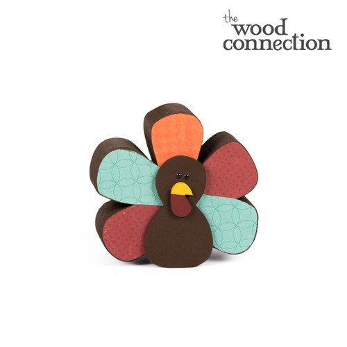 Chunky turkey is hand cut from 1 1/2" thick pine and will stand on it's own. Overlay is hand cut from 1/8" MDF.